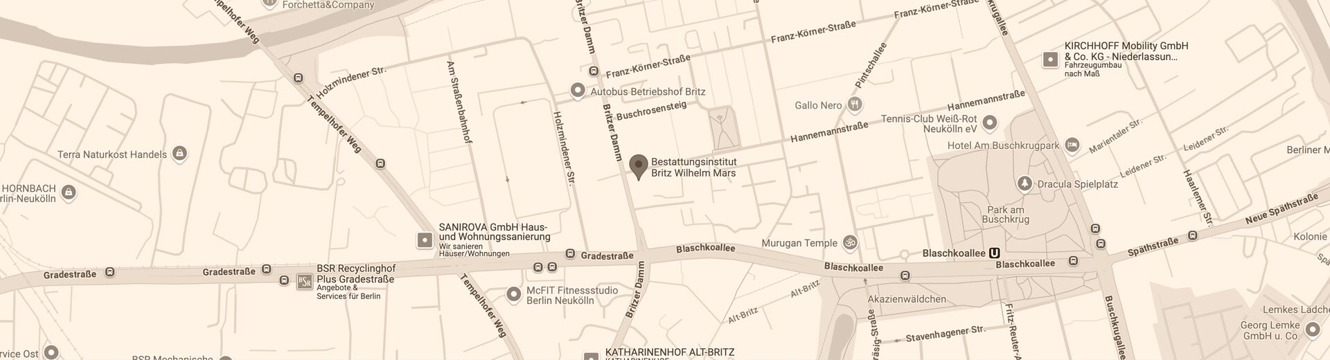 In Zeiten der Trauer brauchen Sie Stabilität und Verlässlichkeit. Einen Partner, der Sie auf dem Weg bis zur Bestattung begleitet – umfassend und pragmatisch, erfahren und empathisch. In Berlin-Britz, bekannt für das Schloss Britz und die Hufeisensiedlung, seit 2008 UNESCO-Welterbe, sind wir dieser Partner.